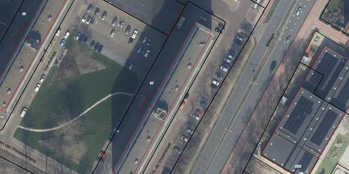 Het perceel waarop J. Th. de Visserstraat 40 staat heeft een oppervlakte van 2936 m². Dit is een zeer groot perceel. De perceeloppervlakte wordt geregistreerd door het Kadaster. Gedetailleerde informatie over de maten van dit perceel kunt u vinden in het rapport Kadastrale kaart met maatvoering van J. Th. de Visserstraat 40.