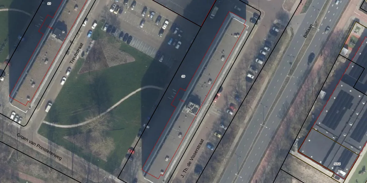 Het perceel waarop J. Th. de Visserstraat 48 staat heeft een oppervlakte van 2936 m². Dit is een zeer groot perceel. De perceeloppervlakte wordt geregistreerd door het Kadaster. Gedetailleerde informatie over de maten van dit perceel kunt u vinden in het rapport Kadastrale kaart met maatvoering van J. Th. de Visserstraat 48.
