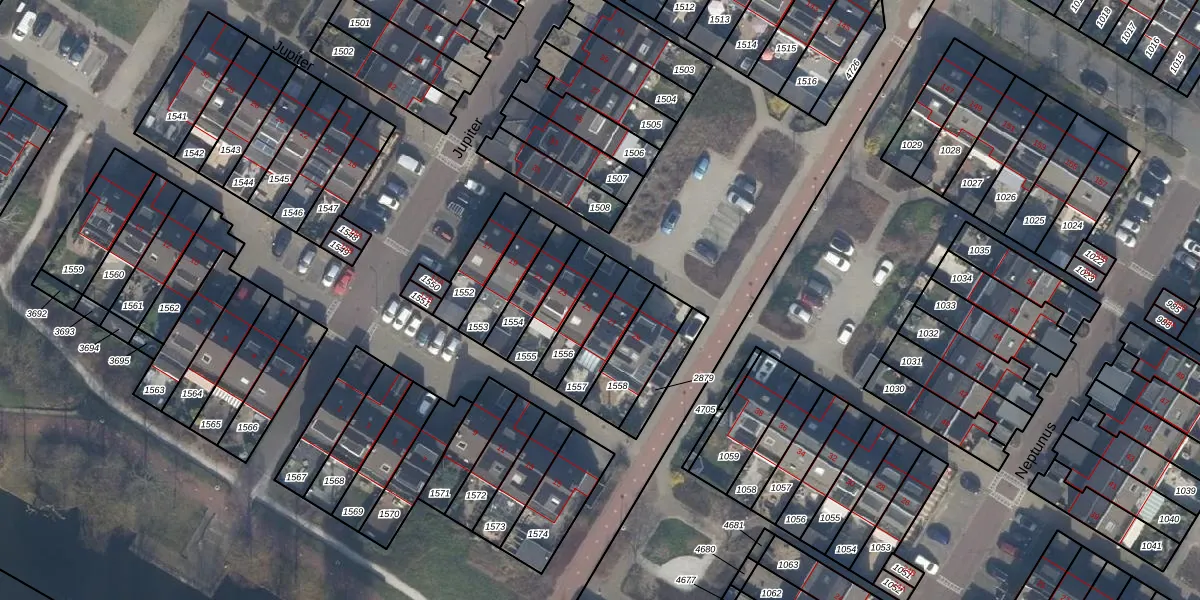 Het perceel waarop Jupiter 25 staat heeft een oppervlakte van 114 m². Dit is een middelgroot perceel. De perceeloppervlakte wordt geregistreerd door het Kadaster. Gedetailleerde informatie over de maten van dit perceel kunt u vinden in het rapport Kadastrale kaart met maatvoering van Jupiter 25.