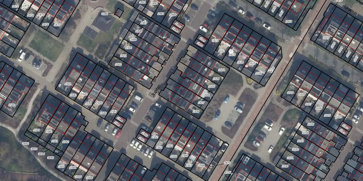 Het perceel waarop Jupiter 33 staat heeft een oppervlakte van 140 m². Dit is een middelgroot perceel. De perceeloppervlakte wordt geregistreerd door het Kadaster. Gedetailleerde informatie over de maten van dit perceel kunt u vinden in het rapport Kadastrale kaart met maatvoering van Jupiter 33.