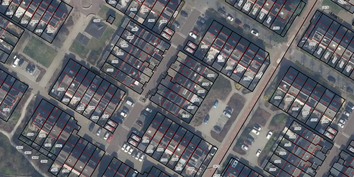 Het perceel waarop Jupiter 35 staat heeft een oppervlakte van 140 m². Dit is een middelgroot perceel. De perceeloppervlakte wordt geregistreerd door het Kadaster. Gedetailleerde informatie over de maten van dit perceel kunt u vinden in het rapport Kadastrale kaart met maatvoering van Jupiter 35.