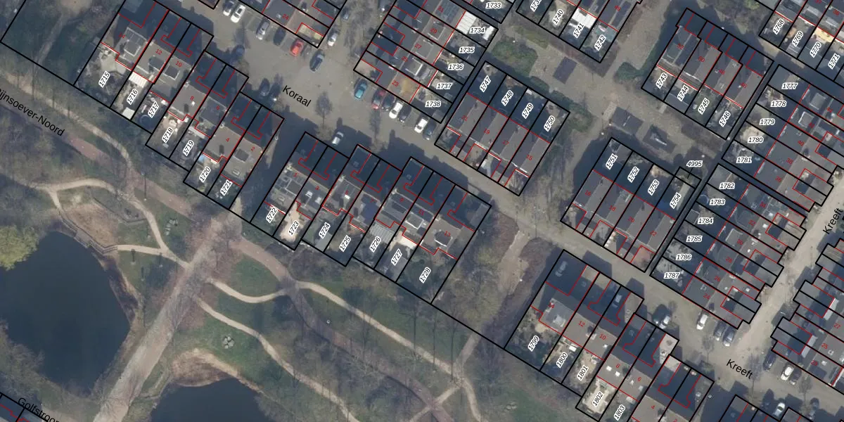 Het perceel waarop Koraal 11 staat heeft een oppervlakte van 167 m². Dit is een middelgroot perceel. De perceeloppervlakte wordt geregistreerd door het Kadaster. Gedetailleerde informatie over de maten van dit perceel kunt u vinden in het rapport Kadastrale kaart met maatvoering van Koraal 11.