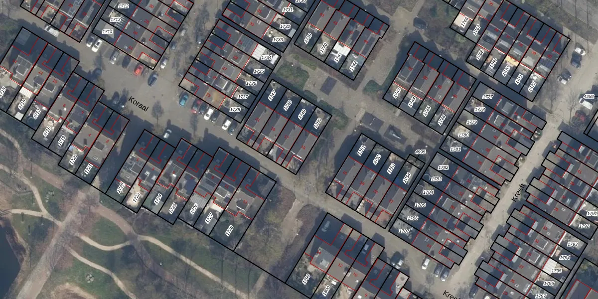Het perceel waarop Koraal 15 staat heeft een oppervlakte van 139 m². Dit is een middelgroot perceel. De perceeloppervlakte wordt geregistreerd door het Kadaster. Gedetailleerde informatie over de maten van dit perceel kunt u vinden in het rapport Kadastrale kaart met maatvoering van Koraal 15.
