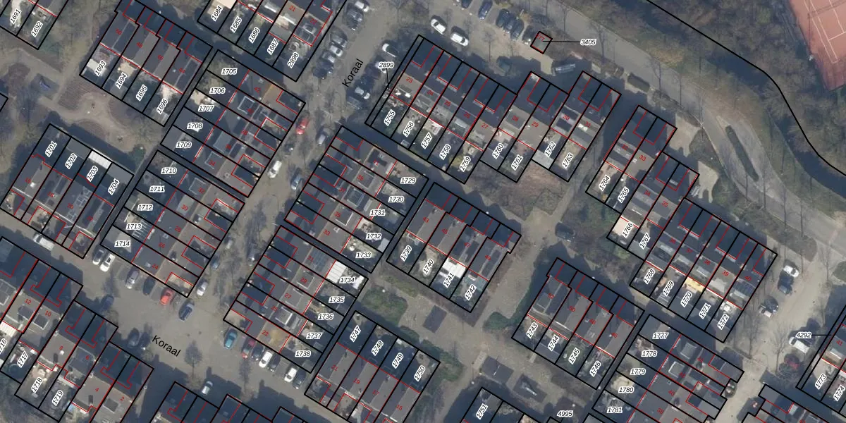 Het perceel waarop Koraal 43 staat heeft een oppervlakte van 137 m². Dit is een middelgroot perceel. De perceeloppervlakte wordt geregistreerd door het Kadaster. Gedetailleerde informatie over de maten van dit perceel kunt u vinden in het rapport Kadastrale kaart met maatvoering van Koraal 43.