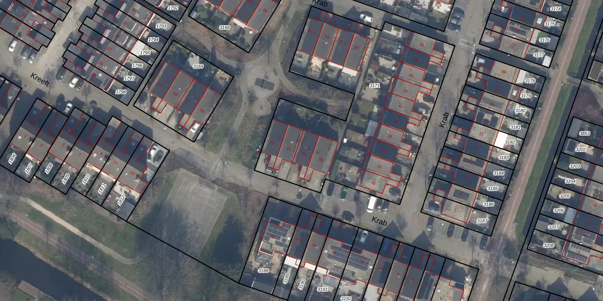 Het perceel waarop Krab 26 staat heeft een oppervlakte van 2565 m². Dit is een zeer groot perceel. De perceeloppervlakte wordt geregistreerd door het Kadaster. Gedetailleerde informatie over de maten van dit perceel kunt u vinden in het rapport Kadastrale kaart met maatvoering van Krab 26.