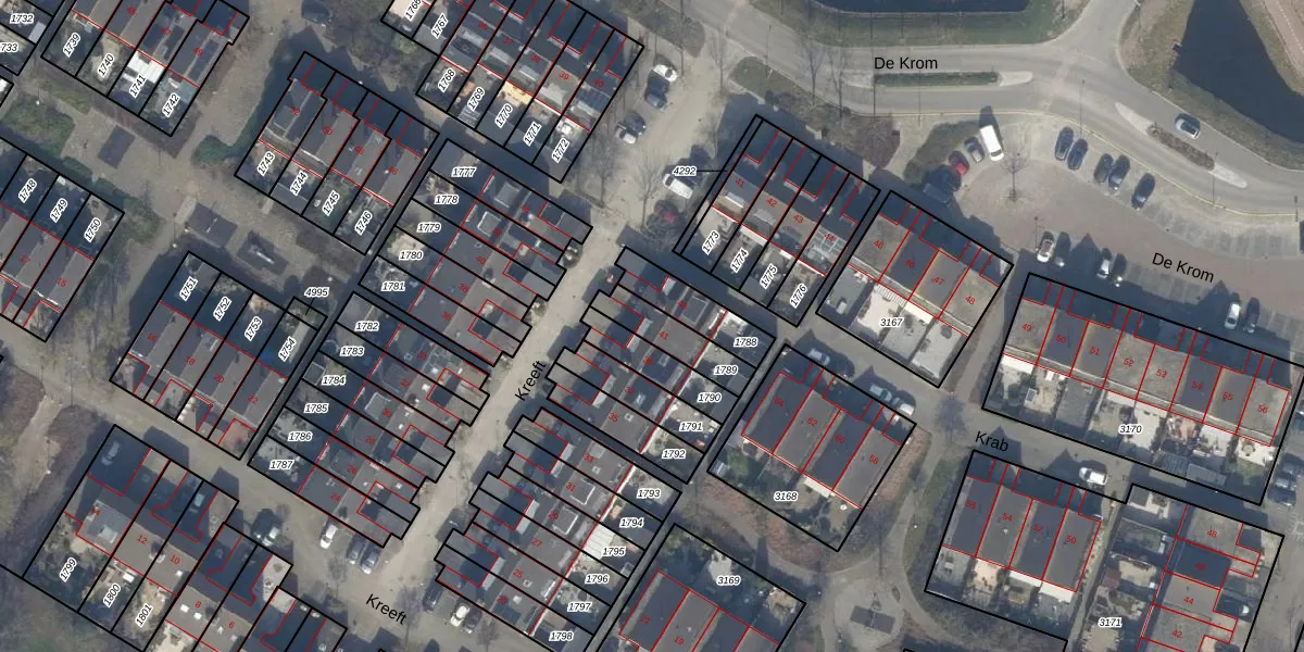 Het perceel waarop Kreeft 41 staat heeft een oppervlakte van 134 m². Dit is een middelgroot perceel. De perceeloppervlakte wordt geregistreerd door het Kadaster. Gedetailleerde informatie over de maten van dit perceel kunt u vinden in het rapport Kadastrale kaart met maatvoering van Kreeft 41.