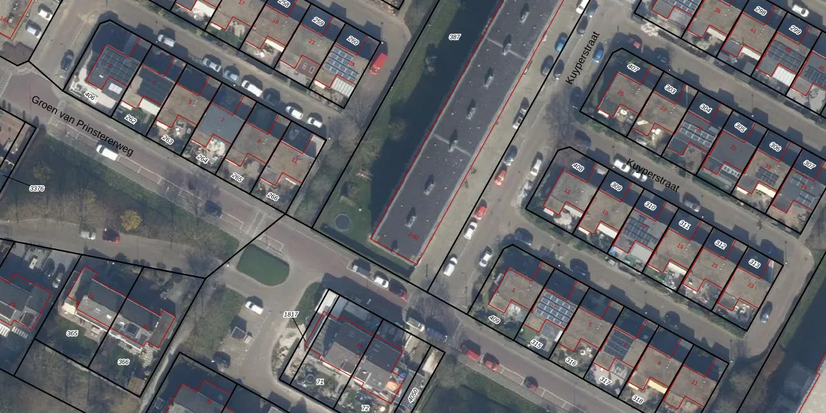 Het perceel waarop Kuyperstraat 32 staat heeft een oppervlakte van 3678 m². Dit is een zeer groot perceel. De perceeloppervlakte wordt geregistreerd door het Kadaster. Gedetailleerde informatie over de maten van dit perceel kunt u vinden in het rapport Kadastrale kaart met maatvoering van Kuyperstraat 32.