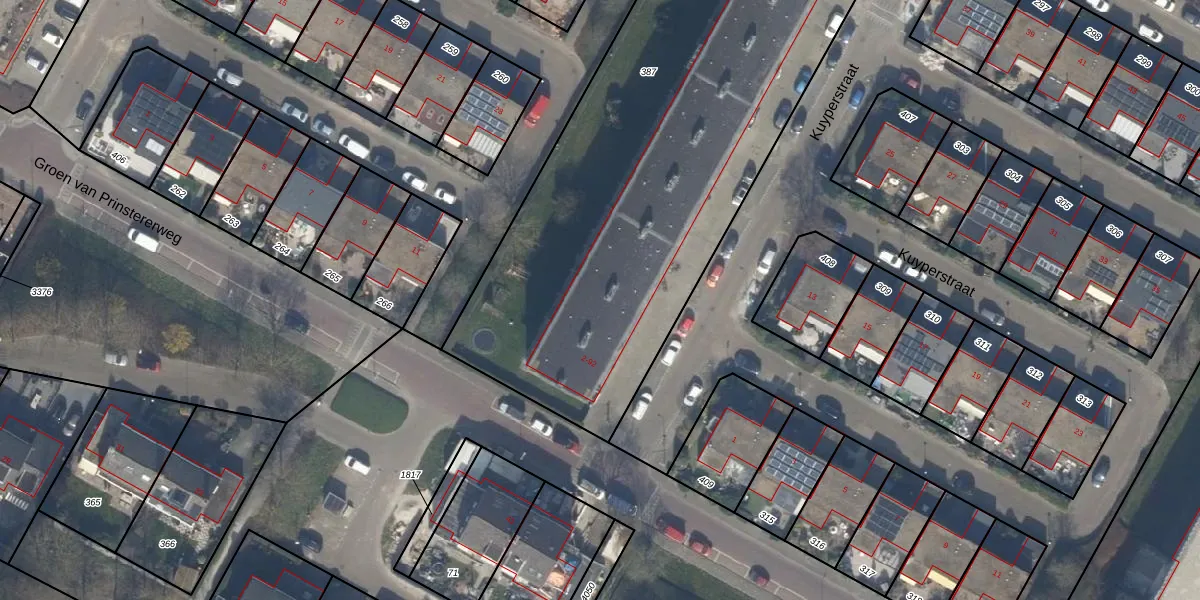 Het perceel waarop Kuyperstraat 34 staat heeft een oppervlakte van 3678 m². Dit is een zeer groot perceel. De perceeloppervlakte wordt geregistreerd door het Kadaster. Gedetailleerde informatie over de maten van dit perceel kunt u vinden in het rapport Kadastrale kaart met maatvoering van Kuyperstraat 34.