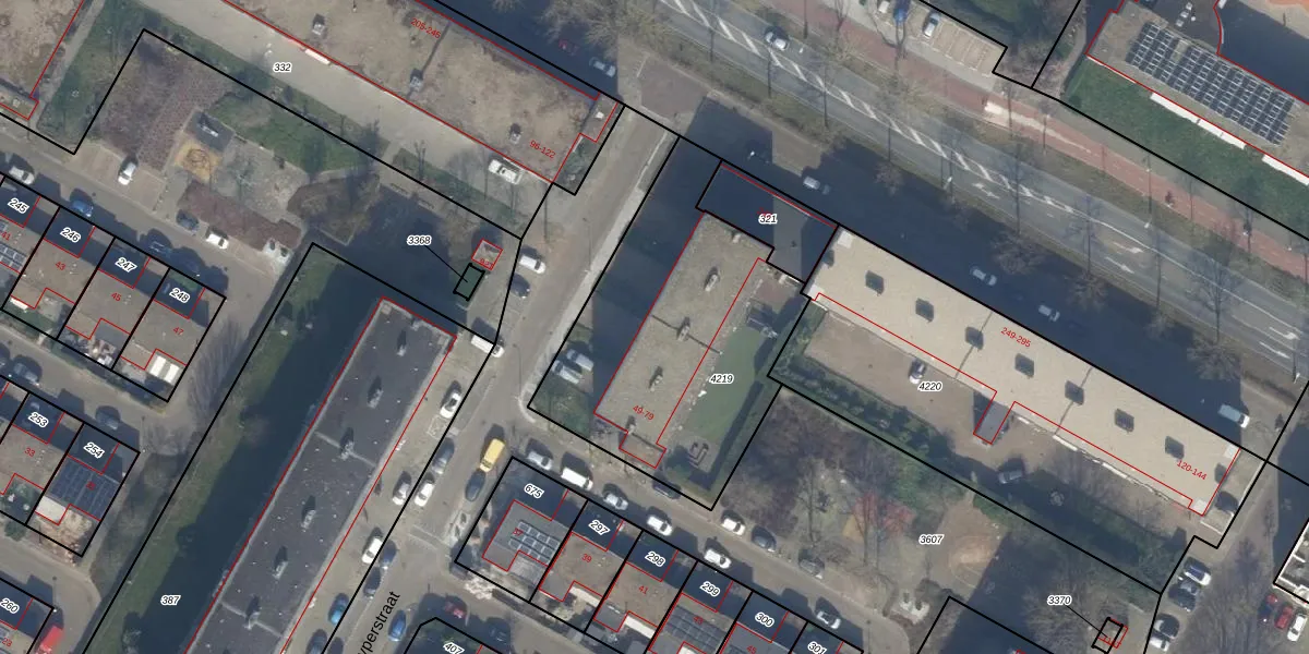 Het perceel waarop Kuyperstraat 49-D staat heeft een oppervlakte van 1257 m². Dit is een zeer groot perceel. De perceeloppervlakte wordt geregistreerd door het Kadaster. Gedetailleerde informatie over de maten van dit perceel kunt u vinden in het rapport Kadastrale kaart met maatvoering van Kuyperstraat 49-D.