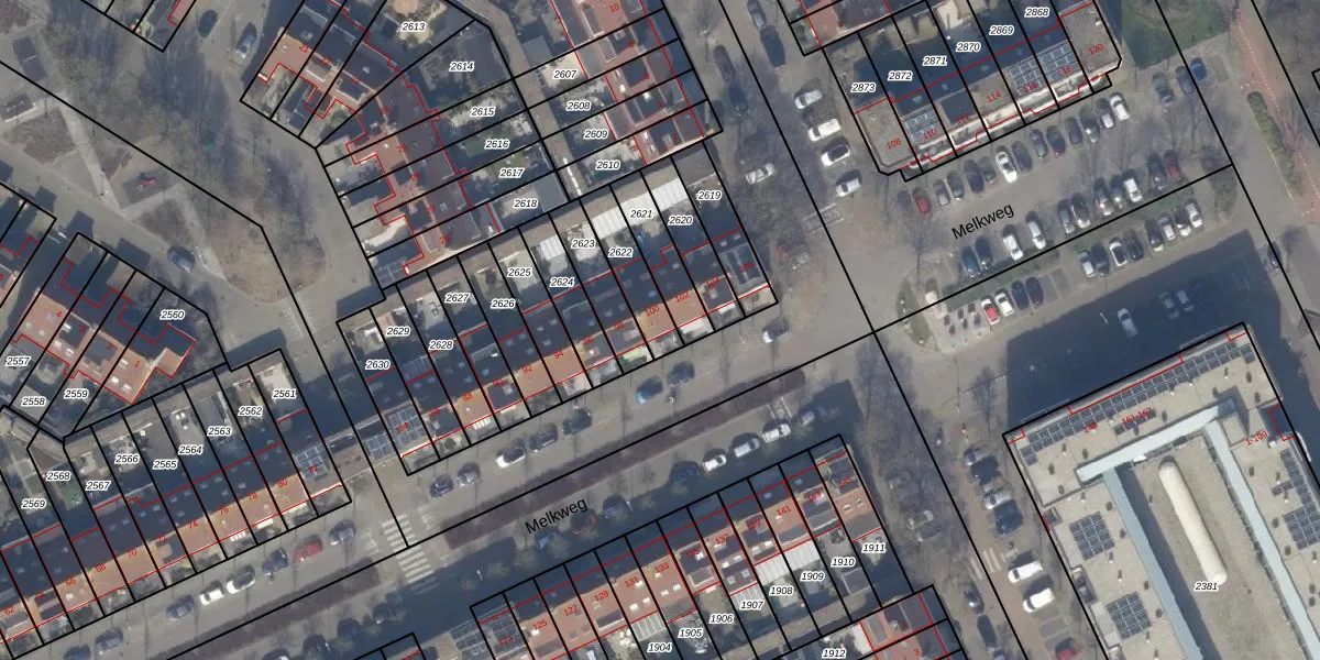 Melkweg 100 is gelegen op kadastraal perceel KWK01C2622. Deze kadastrale aanduiding is uniek en wordt gebruikt door het Kadaster om eigendomsrechten en andere zakelijke rechten vast te leggen. Het perceel maakt onderdeel uit van de kadastrale gemeente Katwijk.