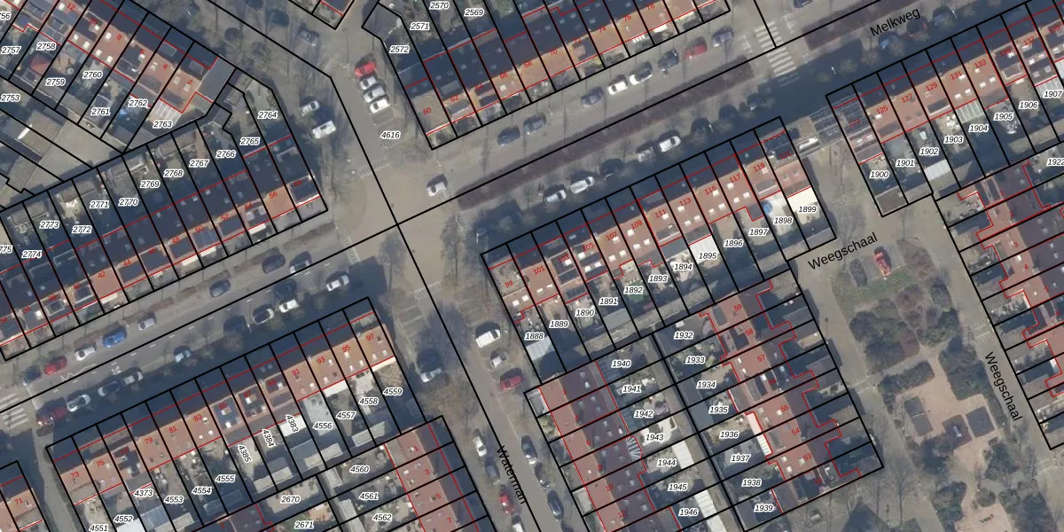 Gebruik de zoekbalk of klik op een perceel voor informatie over de adressen binnen dit perceel.