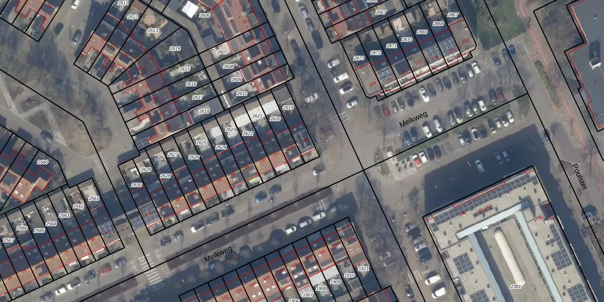 Melkweg 106 is gelegen op kadastraal perceel KWK01C2619. Deze kadastrale aanduiding is uniek en wordt gebruikt door het Kadaster om eigendomsrechten en andere zakelijke rechten vast te leggen. Het perceel maakt onderdeel uit van de kadastrale gemeente Katwijk.