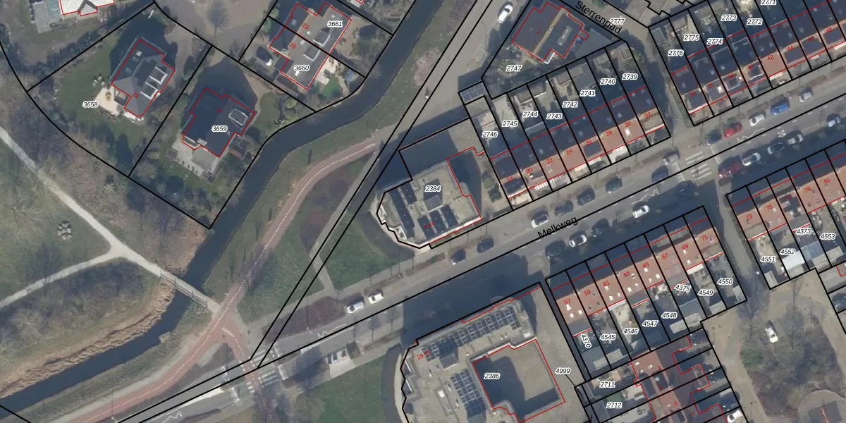 Melkweg 12 is gelegen op kadastraal perceel KWK01C2384. Deze kadastrale aanduiding is uniek en wordt gebruikt door het Kadaster om eigendomsrechten en andere zakelijke rechten vast te leggen. Het perceel maakt onderdeel uit van de kadastrale gemeente Katwijk.
