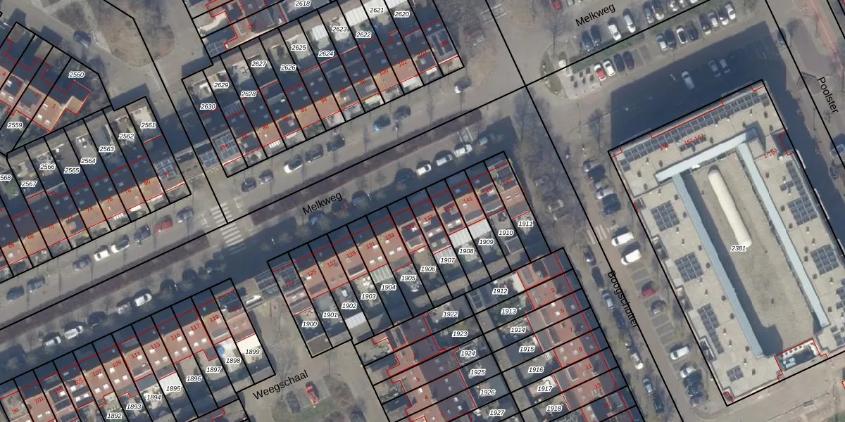 Gebruik de zoekbalk of klik op een perceel voor informatie over de adressen binnen dit perceel.
