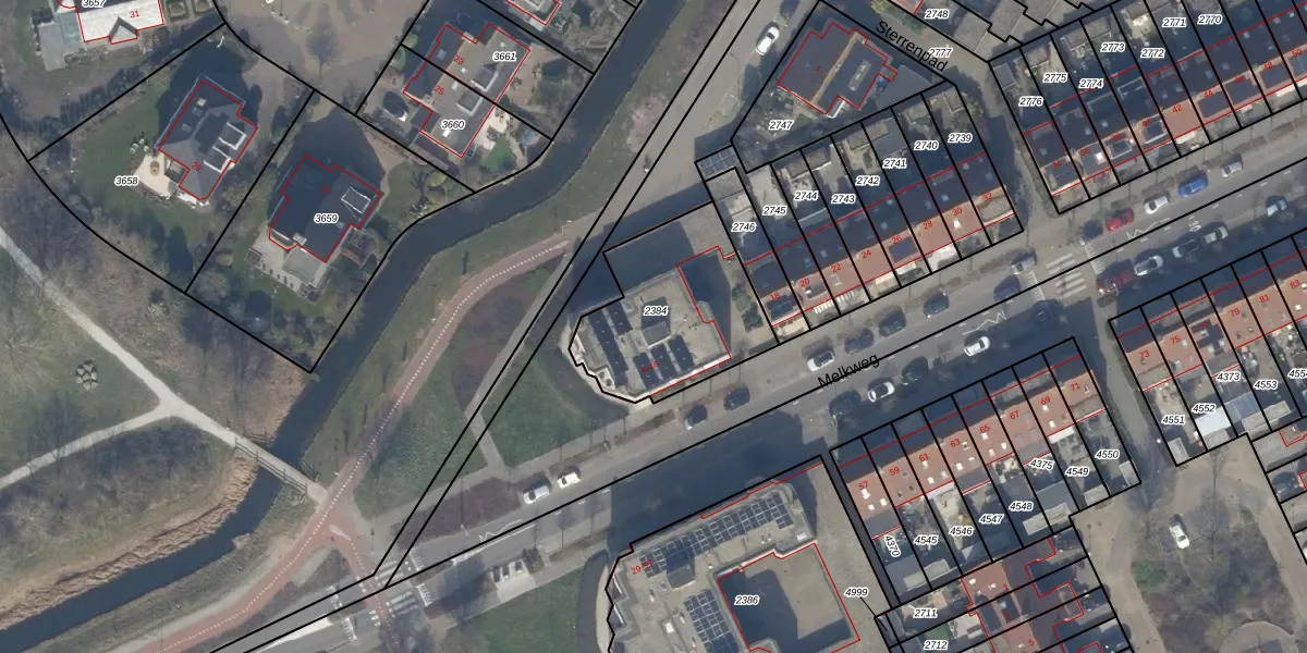 Melkweg 14 is gelegen op kadastraal perceel KWK01C2384. Deze kadastrale aanduiding is uniek en wordt gebruikt door het Kadaster om eigendomsrechten en andere zakelijke rechten vast te leggen. Het perceel maakt onderdeel uit van de kadastrale gemeente Katwijk.