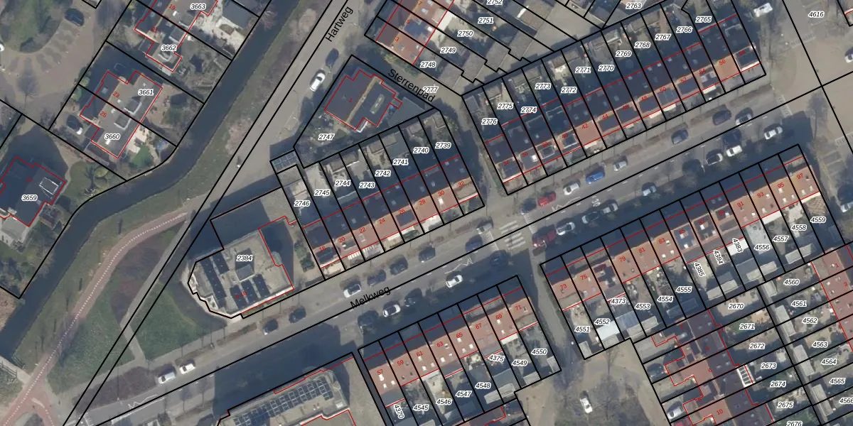 Gebruik de zoekbalk of klik op een perceel voor informatie over de adressen binnen dit perceel.
