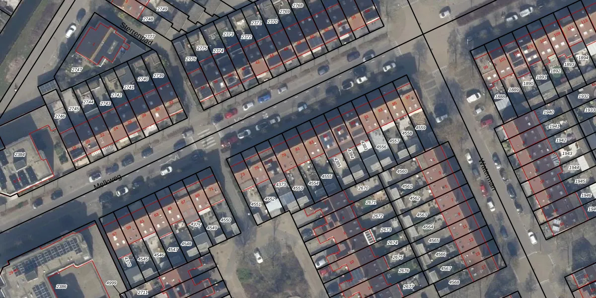 Gebruik de zoekbalk of klik op een perceel voor informatie over de adressen binnen dit perceel.