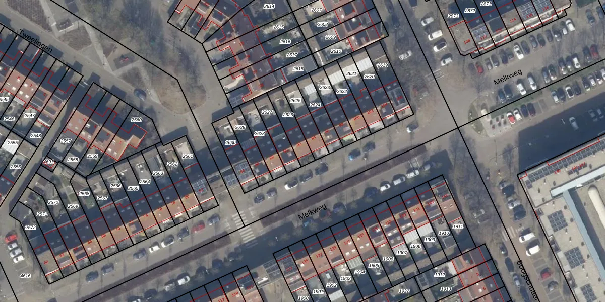 Gebruik de zoekbalk of klik op een perceel voor informatie over de adressen binnen dit perceel.