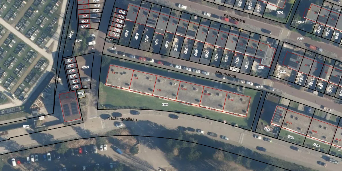 Het perceel waarop Merelstraat 10 staat heeft een oppervlakte van 2380 m². Dit is een zeer groot perceel. De perceeloppervlakte wordt geregistreerd door het Kadaster. Gedetailleerde informatie over de maten van dit perceel kunt u vinden in het rapport Kadastrale kaart met maatvoering van Merelstraat 10.