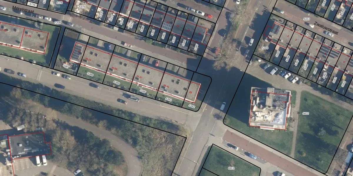 Merelstraat 40 is gelegen op kadastraal perceel KWK01B5391. Deze kadastrale aanduiding is uniek en wordt gebruikt door het Kadaster om eigendomsrechten en andere zakelijke rechten vast te leggen. Het perceel maakt onderdeel uit van de kadastrale gemeente Katwijk.
