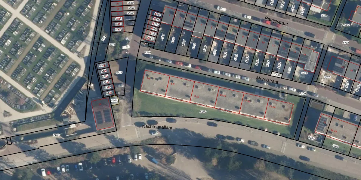 Het perceel waarop Merelstraat 7 staat heeft een oppervlakte van 2380 m². Dit is een zeer groot perceel. De perceeloppervlakte wordt geregistreerd door het Kadaster. Gedetailleerde informatie over de maten van dit perceel kunt u vinden in het rapport Kadastrale kaart met maatvoering van Merelstraat 7.