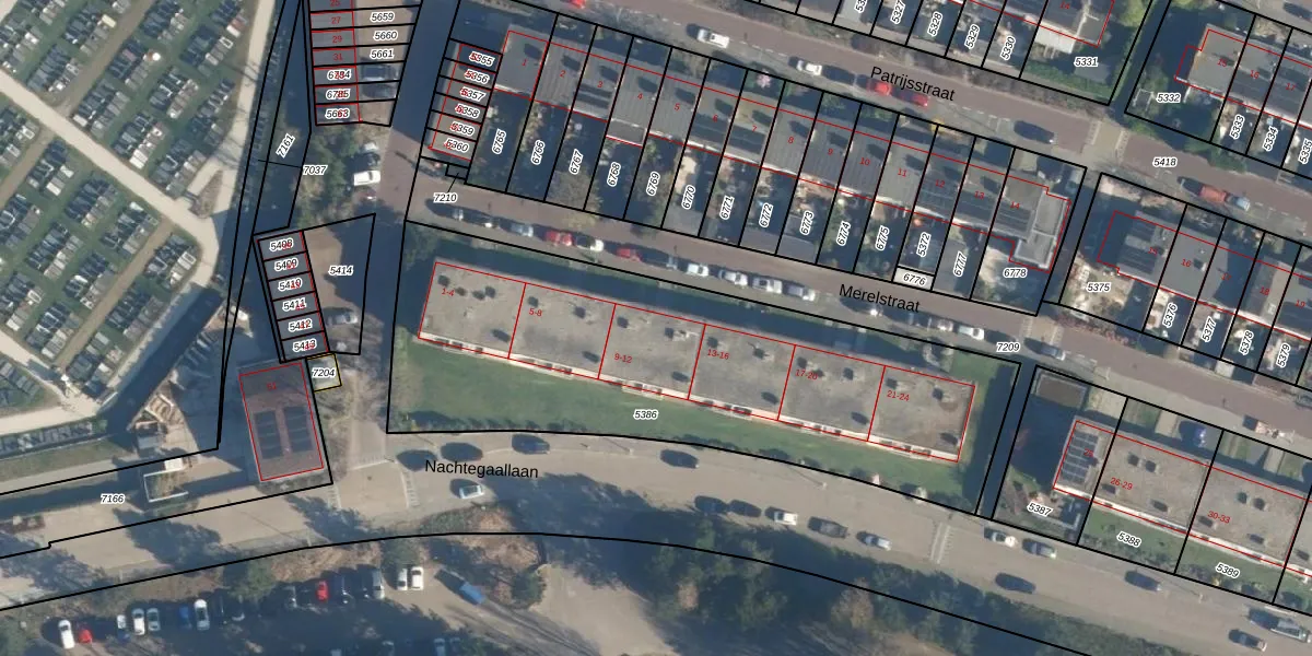 Het perceel waarop Merelstraat 9 staat heeft een oppervlakte van 2380 m². Dit is een zeer groot perceel. De perceeloppervlakte wordt geregistreerd door het Kadaster. Gedetailleerde informatie over de maten van dit perceel kunt u vinden in het rapport Kadastrale kaart met maatvoering van Merelstraat 9.
