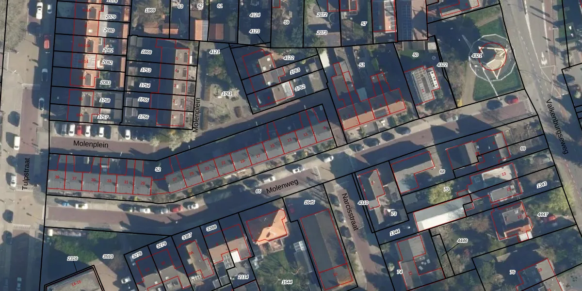Molenweg 13 is gelegen op kadastraal perceel KWK01D52. Deze kadastrale aanduiding is uniek en wordt gebruikt door het Kadaster om eigendomsrechten en andere zakelijke rechten vast te leggen. Het perceel maakt onderdeel uit van de kadastrale gemeente Katwijk.