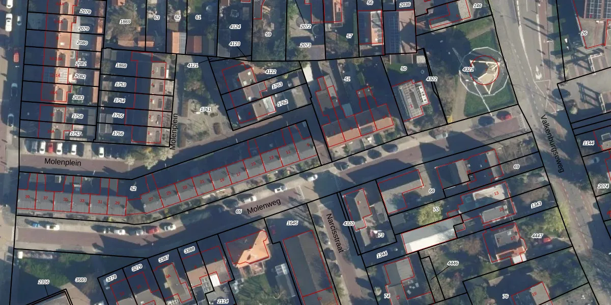 Het perceel waarop Molenweg 9 staat heeft een oppervlakte van 1525 m². Dit is een zeer groot perceel. De perceeloppervlakte wordt geregistreerd door het Kadaster. Gedetailleerde informatie over de maten van dit perceel kunt u vinden in het rapport Kadastrale kaart met maatvoering van Molenweg 9.