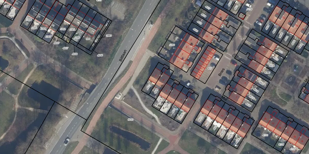 Gebruik de zoekbalk of klik op een perceel voor informatie over de adressen binnen dit perceel.
