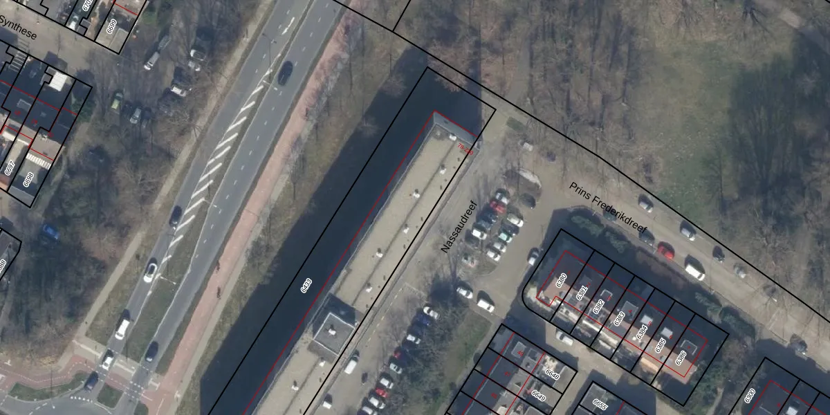 Het perceel waarop Nassaudreef 120 staat heeft een oppervlakte van 2283 m². Dit is een zeer groot perceel. De perceeloppervlakte wordt geregistreerd door het Kadaster. Gedetailleerde informatie over de maten van dit perceel kunt u vinden in het rapport Kadastrale kaart met maatvoering van Nassaudreef 120.
