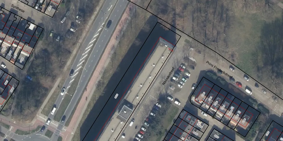 Het perceel waarop Nassaudreef 214 staat heeft een oppervlakte van 2283 m². Dit is een zeer groot perceel. De perceeloppervlakte wordt geregistreerd door het Kadaster. Gedetailleerde informatie over de maten van dit perceel kunt u vinden in het rapport Kadastrale kaart met maatvoering van Nassaudreef 214.