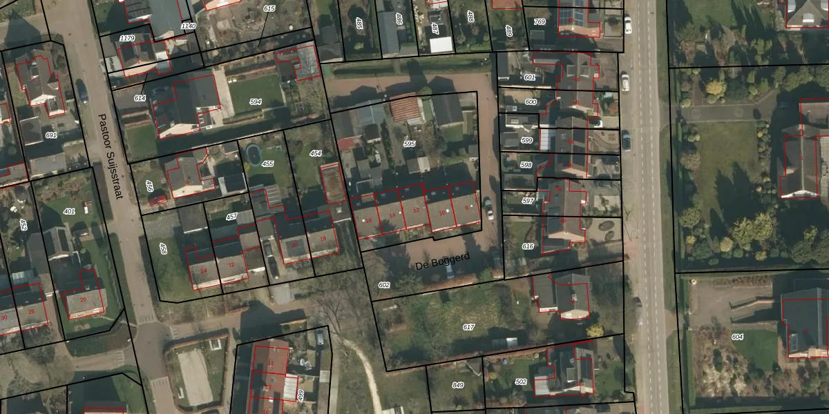 De Boggerd 12 is gelegen op kadastraal perceel CUI00F595. Deze kadastrale aanduiding is uniek en wordt gebruikt door het Kadaster om eigendomsrechten en andere zakelijke rechten vast te leggen. Het perceel maakt onderdeel uit van de kadastrale gemeente Cuijk.
