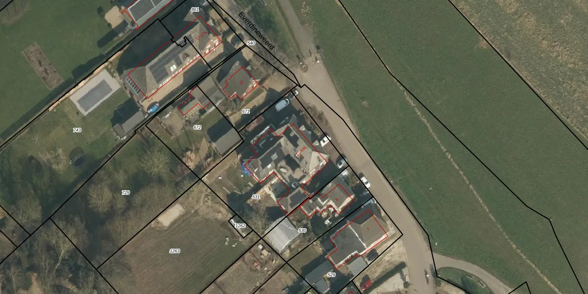 Everdineweerd 13-a is gelegen op kadastraal perceel CUI00F531. Deze kadastrale aanduiding is uniek en wordt gebruikt door het Kadaster om eigendomsrechten en andere zakelijke rechten vast te leggen. Het perceel maakt onderdeel uit van de kadastrale gemeente Cuijk.