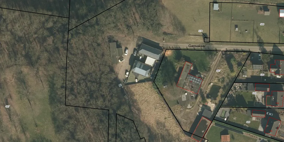 Het perceel waarop Gansakker 22 staat heeft een oppervlakte van 6,4 ha. Dit is een zeer groot perceel. De perceeloppervlakte wordt geregistreerd door het Kadaster. Gedetailleerde informatie over de maten van dit perceel kunt u vinden in het rapport Kadastrale kaart met maatvoering van Gansakker 22.