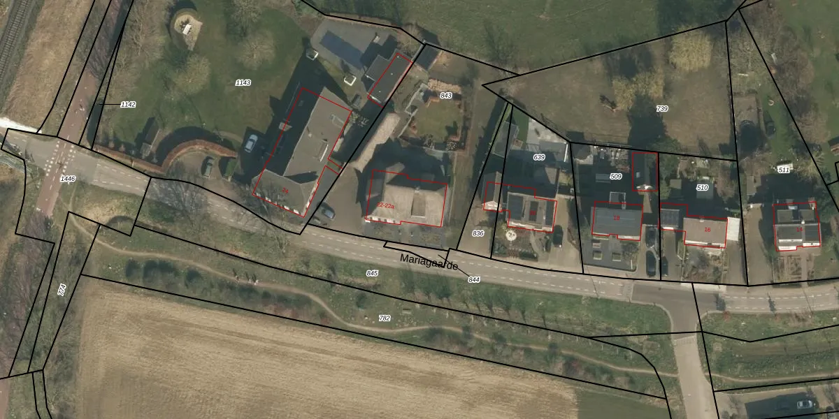 Mariagaarde 22 is gelegen op kadastraal perceel CUI00F843. Deze kadastrale aanduiding is uniek en wordt gebruikt door het Kadaster om eigendomsrechten en andere zakelijke rechten vast te leggen. Het perceel maakt onderdeel uit van de kadastrale gemeente Cuijk.