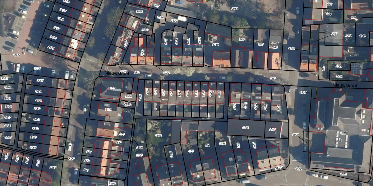 Het perceel waarop Nieuwstraat 21 staat heeft een oppervlakte van 83 m². Dit is een klein perceel. De perceeloppervlakte wordt geregistreerd door het Kadaster. Gedetailleerde informatie over de maten van dit perceel kunt u vinden in het rapport Kadastrale kaart met maatvoering van Nieuwstraat 21.