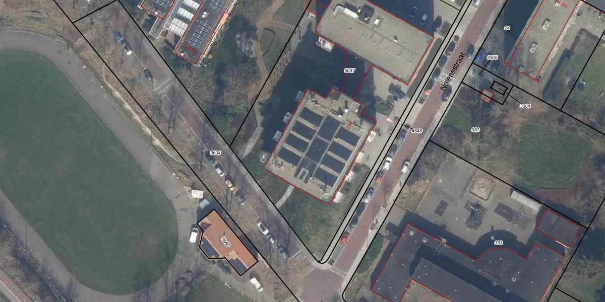 Het perceel waarop Nolensstraat 60 staat heeft een oppervlakte van 4167 m². Dit is een zeer groot perceel. De perceeloppervlakte wordt geregistreerd door het Kadaster. Gedetailleerde informatie over de maten van dit perceel kunt u vinden in het rapport Kadastrale kaart met maatvoering van Nolensstraat 60.