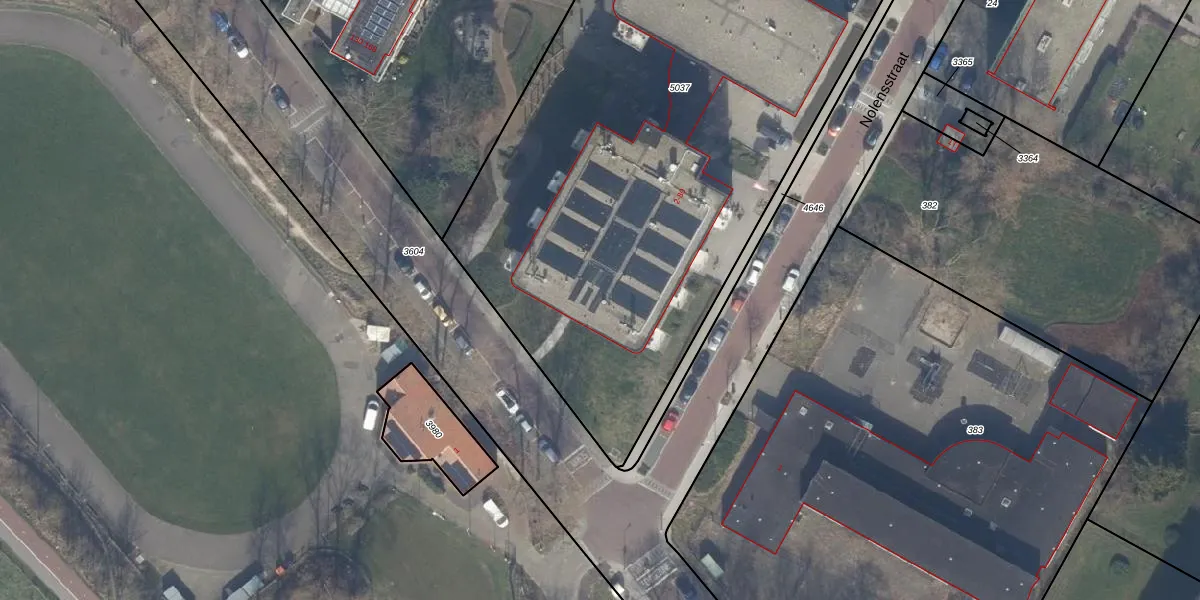 Het perceel waarop Nolensstraat 72 staat heeft een oppervlakte van 4167 m². Dit is een zeer groot perceel. De perceeloppervlakte wordt geregistreerd door het Kadaster. Gedetailleerde informatie over de maten van dit perceel kunt u vinden in het rapport Kadastrale kaart met maatvoering van Nolensstraat 72.
