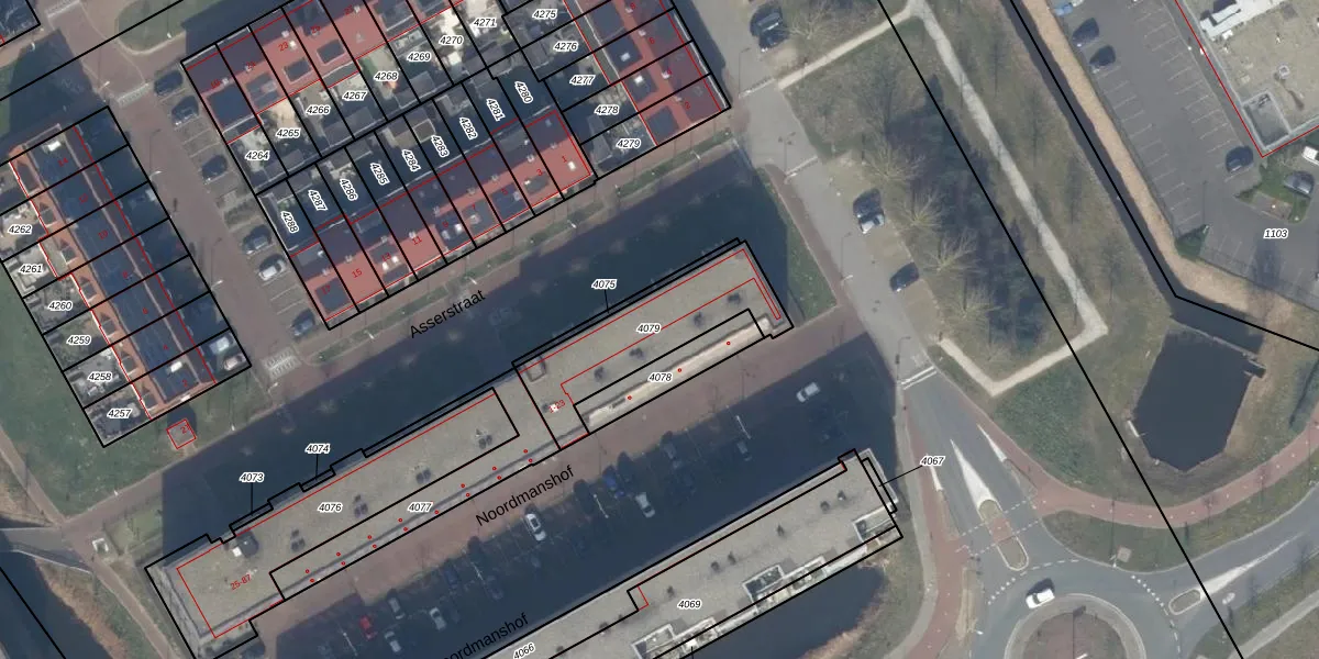 Het perceel waarop Noordmanshof 13 staat heeft een oppervlakte van 422 m². Dit is een groot perceel. De perceeloppervlakte wordt geregistreerd door het Kadaster. Gedetailleerde informatie over de maten van dit perceel kunt u vinden in het rapport Kadastrale kaart met maatvoering van Noordmanshof 13.