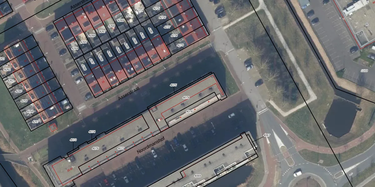 Het perceel waarop Noordmanshof 21 staat heeft een oppervlakte van 422 m². Dit is een groot perceel. De perceeloppervlakte wordt geregistreerd door het Kadaster. Gedetailleerde informatie over de maten van dit perceel kunt u vinden in het rapport Kadastrale kaart met maatvoering van Noordmanshof 21.