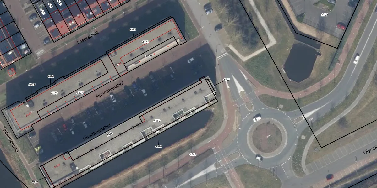 Het perceel waarop Noordmanshof 4 staat heeft een oppervlakte van 974 m². Dit is een groot perceel. De perceeloppervlakte wordt geregistreerd door het Kadaster. Gedetailleerde informatie over de maten van dit perceel kunt u vinden in het rapport Kadastrale kaart met maatvoering van Noordmanshof 4.