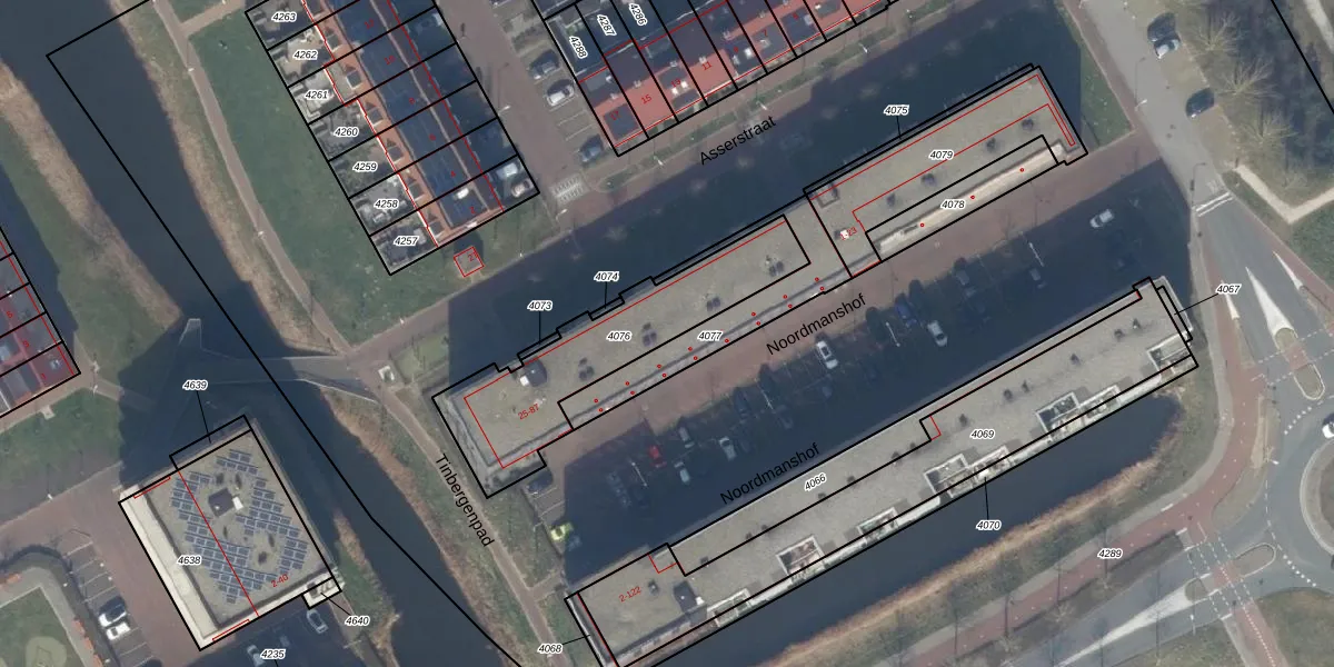 Het perceel waarop Noordmanshof 41 staat heeft een oppervlakte van 626 m². Dit is een groot perceel. De perceeloppervlakte wordt geregistreerd door het Kadaster. Gedetailleerde informatie over de maten van dit perceel kunt u vinden in het rapport Kadastrale kaart met maatvoering van Noordmanshof 41.