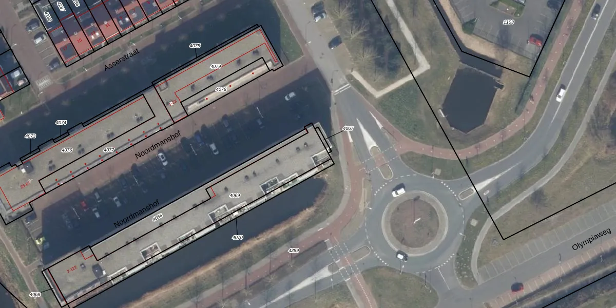 Het perceel waarop Noordmanshof 68 staat heeft een oppervlakte van 974 m². Dit is een groot perceel. De perceeloppervlakte wordt geregistreerd door het Kadaster. Gedetailleerde informatie over de maten van dit perceel kunt u vinden in het rapport Kadastrale kaart met maatvoering van Noordmanshof 68.