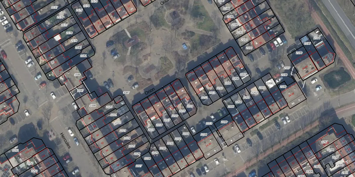Het perceel waarop Orion 37 staat heeft een oppervlakte van 115 m². Dit is een middelgroot perceel. De perceeloppervlakte wordt geregistreerd door het Kadaster. Gedetailleerde informatie over de maten van dit perceel kunt u vinden in het rapport Kadastrale kaart met maatvoering van Orion 37.