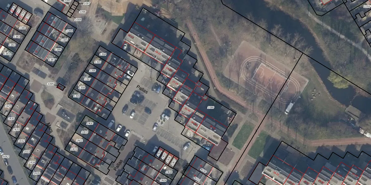 Het perceel waarop Pallas 31 staat heeft een oppervlakte van 1922 m². Dit is een zeer groot perceel. De perceeloppervlakte wordt geregistreerd door het Kadaster. Gedetailleerde informatie over de maten van dit perceel kunt u vinden in het rapport Kadastrale kaart met maatvoering van Pallas 31.