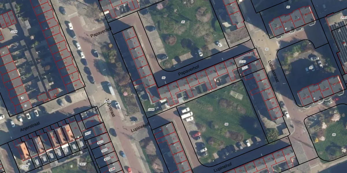 Het perceel waarop Papaverhof 8 staat heeft een oppervlakte van 1894 m². Dit is een zeer groot perceel. De perceeloppervlakte wordt geregistreerd door het Kadaster. Gedetailleerde informatie over de maten van dit perceel kunt u vinden in het rapport Kadastrale kaart met maatvoering van Papaverhof 8.