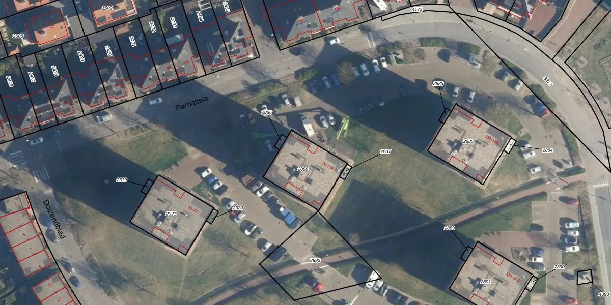 Het perceel waarop Parnassia 105 staat heeft een oppervlakte van 384 m². Dit is een groot perceel. De perceeloppervlakte wordt geregistreerd door het Kadaster. Gedetailleerde informatie over de maten van dit perceel kunt u vinden in het rapport Kadastrale kaart met maatvoering van Parnassia 105.