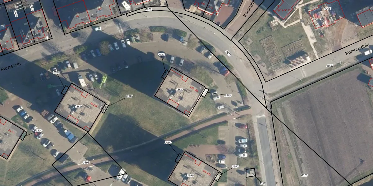 Parnassia 167 is gelegen op kadastraal perceel KWK01D2885. Deze kadastrale aanduiding is uniek en wordt gebruikt door het Kadaster om eigendomsrechten en andere zakelijke rechten vast te leggen. Het perceel maakt onderdeel uit van de kadastrale gemeente Katwijk.