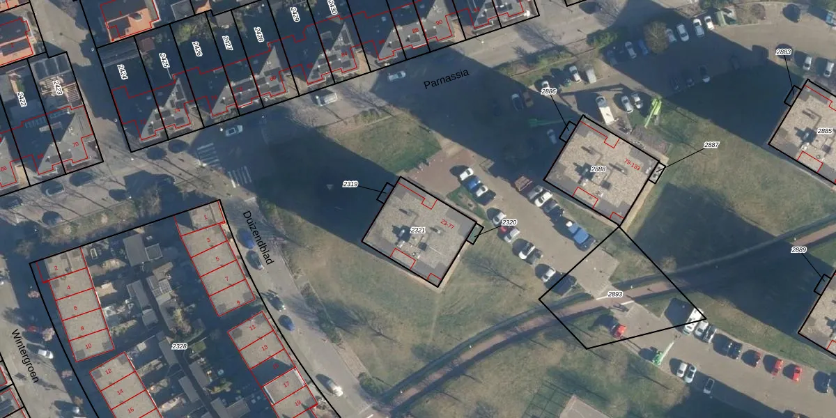 Parnassia 33 is gelegen op kadastraal perceel KWK01D2321. Deze kadastrale aanduiding is uniek en wordt gebruikt door het Kadaster om eigendomsrechten en andere zakelijke rechten vast te leggen. Het perceel maakt onderdeel uit van de kadastrale gemeente Katwijk.