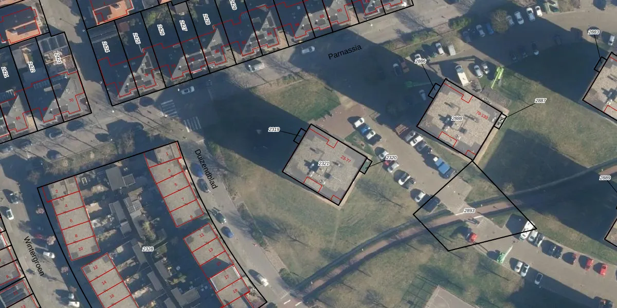 Parnassia 43 is gelegen op kadastraal perceel KWK01D2321. Deze kadastrale aanduiding is uniek en wordt gebruikt door het Kadaster om eigendomsrechten en andere zakelijke rechten vast te leggen. Het perceel maakt onderdeel uit van de kadastrale gemeente Katwijk.